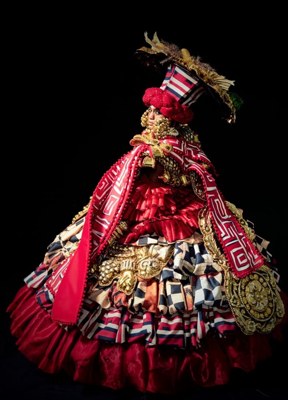 A fantasia recria de forma carnavalesca o imaginário das negras que exerciam o comércio ambulante e que, por meio do trabalho cotidiano e de estratégias de sobrevivência e resistência, passaram a adquirir joias de ouro e prata como forma de poupança financeira, ascensão social e afirmação de identidade.